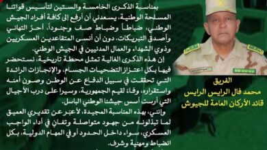 قائد أركان الجيوش يهنئ أفراد القطاع في الذكرى الـ65 لتأسيسه