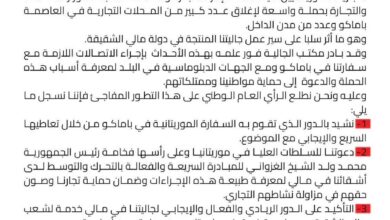 قالت الجالية الموريتانية في مالي، إن إدارة التجارة والمنافسة التابعة لوزارة الصناعة والتجارة بمالي قامت بحملة واسعة أسفرت عن إغلاق…
