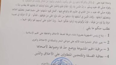 طالبت هيئة العلماء الموريتانيين بمدينة نواذيبو الرئيس محمد ولد الغزواني بإنشاء شرطة لضبط الأخلاق والمحافظة على القيم الإسلامية. وطالبت الهيئة…