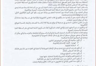 تعلن اللجنة المكلفة بتسيير موارد صندوق الدعم العمومي لوسائل الاتصال أن اللجنة المشرفة على سير الأعمال المتعلقة بمسابقة جوائز التميز…