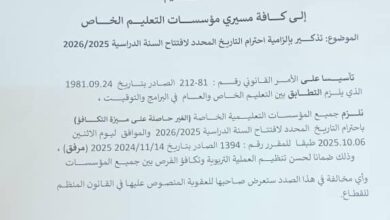 إلزام مؤسسات التعليم الخاص باحترام تاريخ الافتتاح الدراسي
