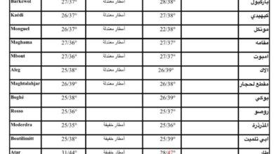 توقعت الهيئة الوطنية للأرصاد الجوية تساقطات مطرية خفيفة إلى معتدلة، قوية محليًا على الحوضين ولعصابة وتكانت ولبراكنة وكركل وكيدي ماغه…