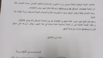 لجنة الأهلة تعلن الجمعة فاتح شهر محرم 1447