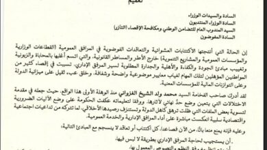 أصدر الوزير الأول المختار ولد اجاي، اليوم الجمعة، تعميما قال فيه إنه يحظر من الآن فصاعدا أي اكتتاب أو تعاقد…