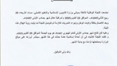 لجنة الأهلة تعلن الجمعة فاتح شهر جمادي الأولى