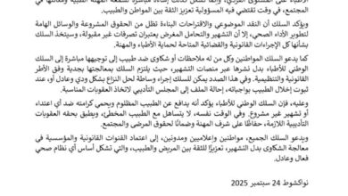 استنكر السلك الوطني للأطباء ما قال إنها “حملات تحامل وتشهير تستهدف بعض الأطباء عبر شبكات التواصل الاجتماعي” مُعربا عن رفضه…