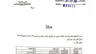 وجّهت وزارة الصحة استدعاء لثلاثة موظفين، دعتهم فيه إلى الالتحاق بمقرات عملهم في غضون 72 ساعة من تاريخ نشر البلاغ.…