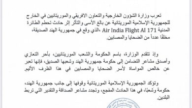 موريتانيا تُعزّي الهند في ضحايا الطائرة المتحطمة