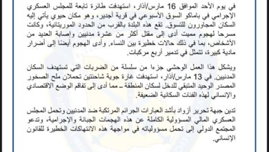 الموريتاني : أعلنت جبهة تحرير أزواد مقتل أزيد من 10 مدنيين وإصابة “العديد من الأشخاص بما في ذلك حالات خطرة…