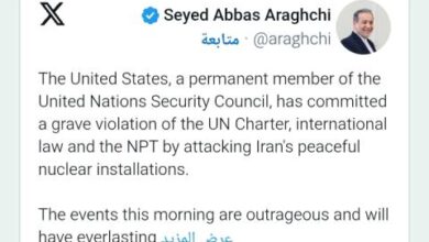حذَّر وزير الخارجية الإيراني عباس عراقجي، اليوم (الأحد)، من أن الضربات الأميركية على 3 منشآت نووية رئيسية في إيران «شنيعة»،…