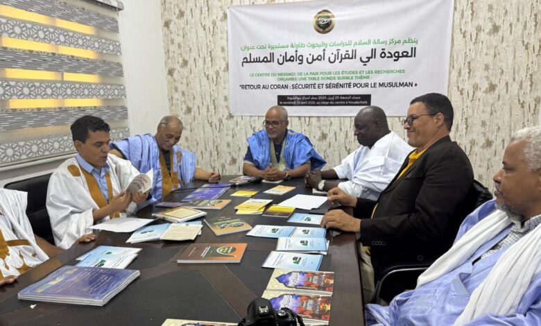 نظم مركز رسالة السلام للدراسات والبحوث بنواكشوط طاولة مستديرة تحت عنوان: العودة الي القرآن أمن وأمان المسلم مساء اليوم الجمعة 25 إبريل 2025 بمقر المركز بنواكشوط.