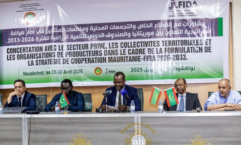 بدأت صباح اليوم في فندق نواكشوط اعمال ورشة تشاورية تجمع ممثلين عن القطاع الخاص، والتجمعات المحلية، ومنظمات المنتجين، ضمن جهود اعداد استراتيجية التعاون بين موريتانيا والصندوق الدولي للتنمية الزراعية FIDA للفترة ما بين 2026 و2033.