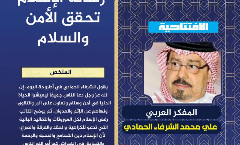 المفكر العربي الكبير علي محمد الشرفاء الحمادي يكتب.. رسالة الإسلام تحقق الأمن والسلام
