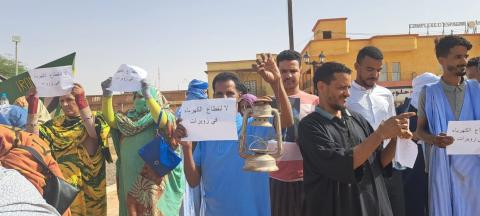 نظم سكان مدينة ازويرات، صباح اليوم الأربعاء 4 يونيو 2025م وقفة إحتجاجية أمام مباني ولاية تيرس زمور، للمطالبة بتوفير الكهرباء.