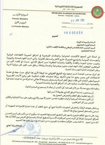 وألزم الوزير الأول الحكومة بالسهر على التطبيق الصارم للتتعميم، لما سيكون له من تأثير على السير الحسن للمرافق العمومية، إحاطة الوزارة الأولى بالاجراءات في سبيل تنفيذه.
