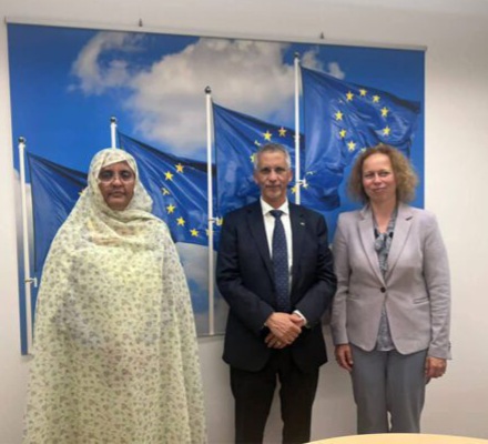 عقد معالي مفوض حقوق الإنسان والعمل الإنساني والعلاقات مع المجتمع المدني، السيد سيد أحمد ولد بنان، صباح اليوم الجمعة بجنيف، لقاء عمل مع ممثلة المندوبية الدائمة للاتحاد الأوروبي بجنيف.