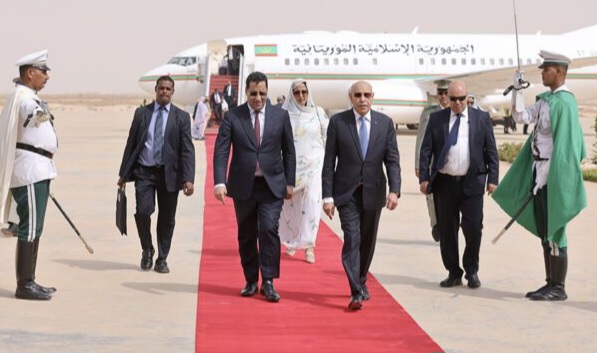 واستقبل فخامة رئيس الجمهورية لدى وصوله عند سلم الطائرة بمطار نواكشوط الدولي أم التونسي من طرف معالي الوزير الأول السيد المختار ولد أجاي، والوزير الأمين العام لرئاسة الجمهورية السيد مولاي ولد محمد لغظف، والوزيرين المستشارين برئاسة الجمهورية السيد محمد ولد عبد الله ولد عثمان، والسيدة عيساتا با يحيى، ووزير العدل السيد محمد محمود ولد الشيخ عبدالله بن بيه، ووزير الشؤون الخارجية والتعاون الإفريقي والموريتانيين في الخارج السيد محمد سالم ولد مرزوك، ووزير الدفاع وشؤون المتقاعدين وأولاد الشهداء السيد حننا ولد سيدي، ووزير الداخلية وترقية اللامركزية والتنمية المحلية السيد محمد احمد ولد محمد الأمين، وقائد الأركان الخاصة لرئيس الجمهورية الفريق ابراهيم فال الشيباني الشيخ أحمد، والمديرة المساعدة لديوان رئيس الجمهورية السيدة غانديغا فاتيماتا، ووالي نواكشوط الغربية السيد امربيه ربو ولد بونن ولد عابدين، ونائبة جهة نواكشوط السيدة هاوا سيدي بي.