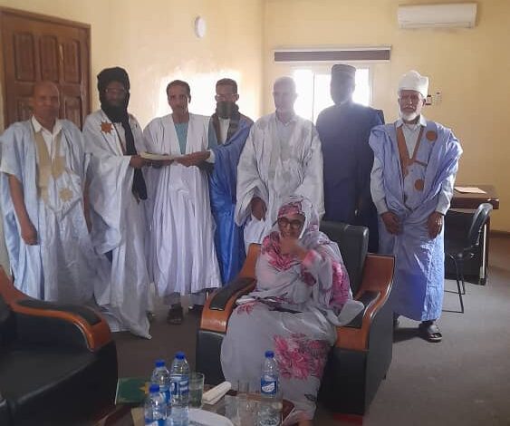 وجرى اللقاء على هامش زيارة قام بها وفد اللجنة برئاسة الوزير السابق صو آدما صمبا، وعضوية كل من: محمد الأمين الفاضل، منسق أعمال اللجنة، والدكتور يحيى محمد الهاشمي عن جمعية العقل للثقافة وإحياء التراث، والأستاذ باباه التراد من الحملة الشعبية للتمكين للغة العربية وتطوير لغاتنا الوطنية، والدكتور محمد داهي من جمعية الركب الشنقيطية، والسيدة فاطمة السالمة المصطفى من شبكة الصحفيات الموريتانيات.