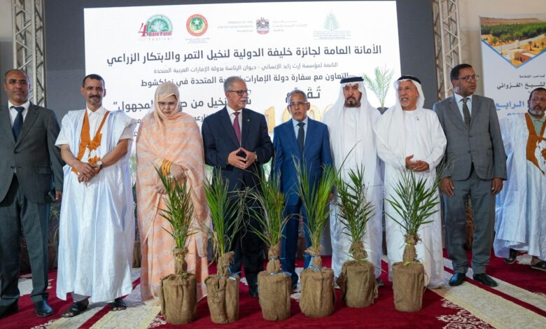كما ثمّن معاليه تقديم الأمانة العامة للجائزة 1000 شتلة من نخيل التمر صنف “المجهول” لصالح مزارعي النخيل في موريتانيا، معرباً عن تقديره للدعم المستمر الذي تقدمه دولة الإمارات العربية المتحدة.