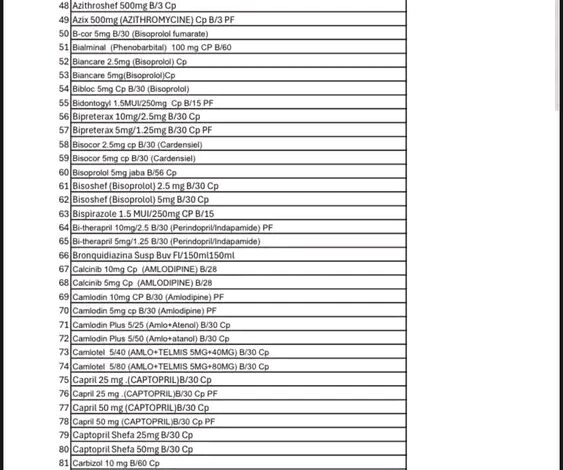 ويبلغ عدد الأدوية المتوفرة أكثر من 320 صنفا دوائيا مسجلا ومعتمدا، تغطي مختلف العلاجات الأساسية للأمراض المزمنة، وخاصة داء السكري، والضغط، والقلب، ومضادات التخثر… وغيرها.