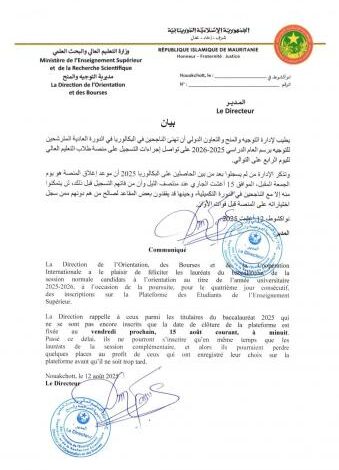 أعلنت لإدارة التوجيه والمنح والتعاون الدولي، التابعة لوزارة التعليم العالي، أن منصة توجيه طلاب الناجحين في باكلوريا 2025 ستغلق منتصف شهر أغسطس الجاري.