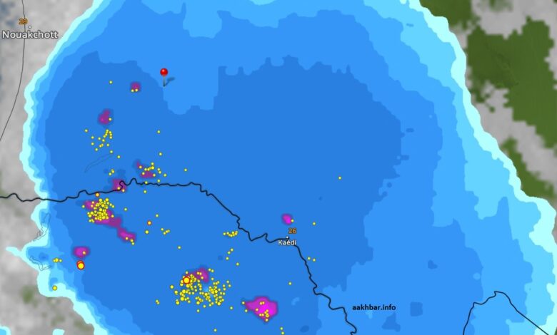 تنتشر سحب ماطرة على المنطقة الممتدة من ولاية العصابة شرقا، وحتى ولاية الترارزة غربا، فيما تتركز السحب الأكثر غزارة على منطقة خط النهر، وعلى جنوب مدينة بوتمليت.