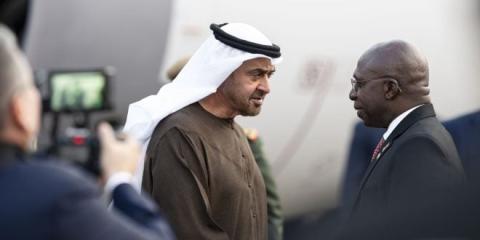 وصل رئيس دولة الإمارات الشيخ محمد بن زايد، اليوم (الاثنين)، إلى لواندا؛ عاصمة أنغولا، في زيارة دولة، حيث كان في استقباله عند سلم الطائرة الرئيس الأنغولي جواو مانويل غونسالفس.