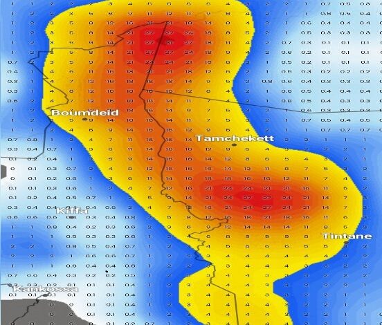 ويتوقع بإذن الله تعالى أن تتمدد هذه السحب الماطرة، نحو الشمال، وأن تؤدي إلى تهاطل أمطار من متوسطة إلى غزيرة، وخاصة على ولايات كوركل، والبراكنة، والحوض الغربي، والعصابة، والترارزة.