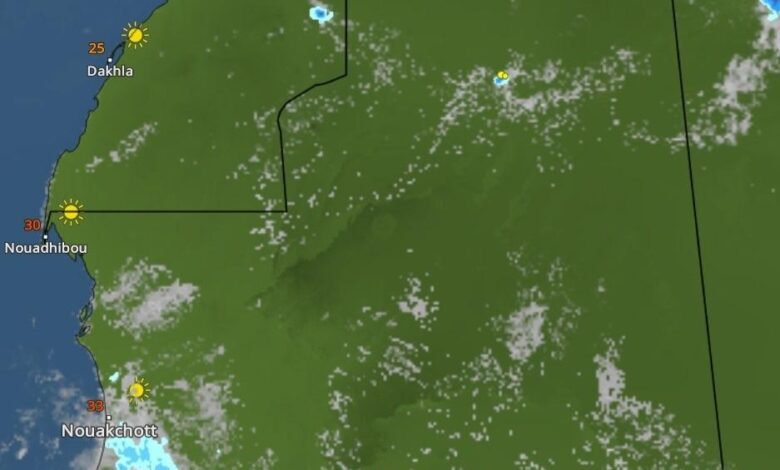 وأفادت المعطيات الحالية بوجود سحب ماطرة خفيفة على الحدود الجنوبية للبلاد وأخرى متفرقة على ولاية الترارزة، فيما تنتشر سحب محدودة شمال البلاد في منطقة غير مأهولة.