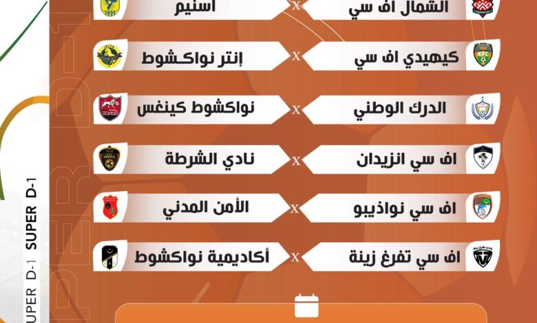 وسيواجه فريق الدرك الوطني ضمن هذا الدوري فريق “نواكشوط كينغيس” ويواجه “اف سي انزيدان” نادي الشرطة، و “اف سي نواذيبو” فريق الأمن المدني و”اف سي تفرغ زينه” نادي “أكاديمية نواكشوط”.