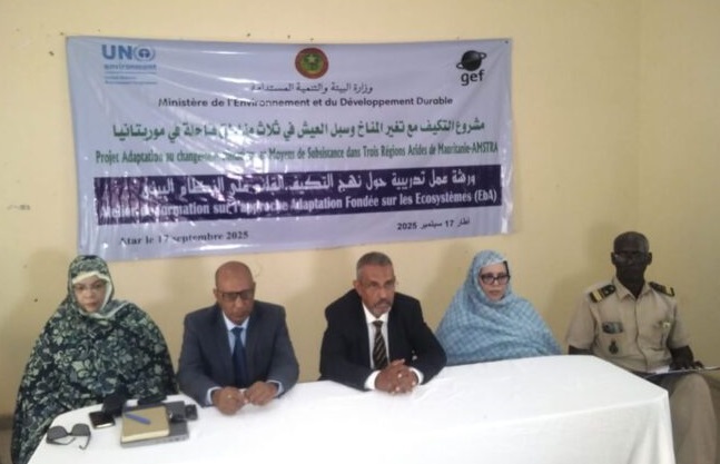 بدأت صباح اليوم الأربعاء في مدينة أطار، أعمال ورشة تدريبية حول السبل الكفيلة بحماية النظام البيئي، منظمة من طرف وزارة البيئة والتنمية المستدامة بالتعاون مع مشروع التكيف مع تغير المناخ وسبل العيش في ثلاث مناطق من موريتانيا.