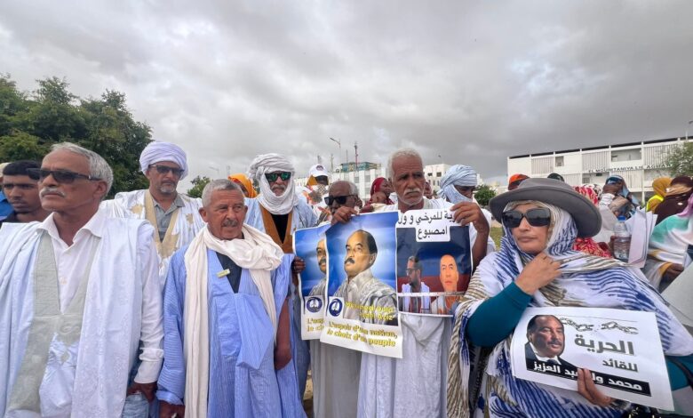 وطالب المحتجون الرئيس محمد ولد الشيخ الغزواني بإنهاء معناة الرئيس السابق والسماح له بالسفر لتلقي العلاج.