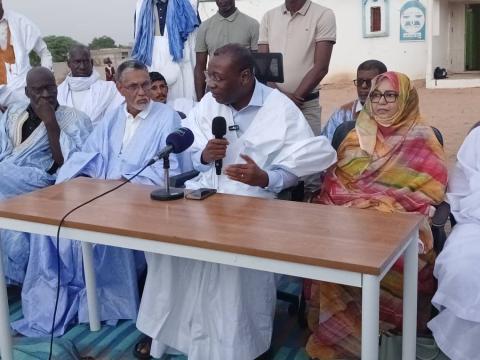 وطالب رئيس الحزب من ساكنة المقاطعة تخصيص استقبال شعبي لائق لضيف المقاطعة الكبير فخامة الرئيس محمد ولد الشيخ الغزواني قبل أن يسهب في شرح أهداف الزيارة وما نحمله للولاية وللوطن ككل من تنفيذ لمشاريع إنمائية وانجازات جبارة في مختلف المجالات