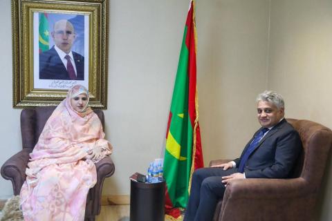 استقبلت وزيرة العمل الاجتماعي والطفولة والأسرة، السيدة صفية انتهاه، اليوم الثلاثاء بمكتبها في نواكشوط، سفير جمهورية مصر العربية المعتمد لدى بلادنا، السيد أحمد محمد طايع.