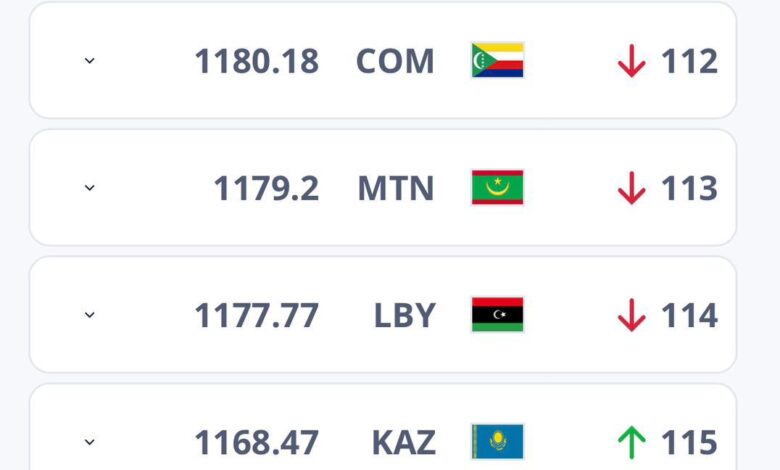 وعلى الصعيد العالمي، حافظت إسبانيا على صدارة الترتيب، بينما تصدر المغرب المنتخبات العربية بالمركز 12 عالميا رغم تراجع ترتيبها هذا الشهر.