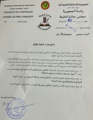 أعلن مجلس جائزة شنقيط اليوم الأربعاء أسماء الفائزين بالجائزة لسنة 2025.