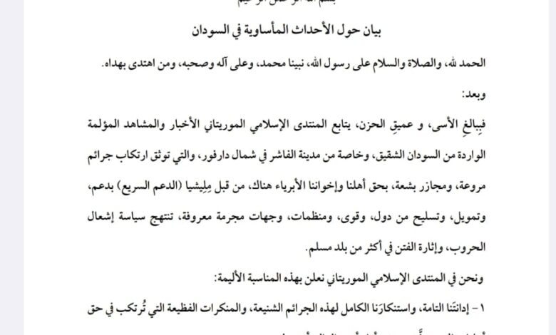 المنتدى الإسلامي الموريتاني يتضامن مع السودان ويدعوا لمساندته