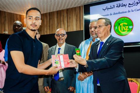 وقد أقيم حفل توزيع بطاقة الشباب في مقر البلدية، بحضور مستشار والي ولاية نواكشوط الغربية وحاكم مقاطعة تفرغ زينة وعمدة البلدية ورئيس رابطة العمد، ورئيس مصلحة الشؤون الاجتماعية وعدد من عمال البلدية والشباب المستفيدين من الدفعة الأولي إلى جانب عدد من الشركاء المؤسساتيين والتربويين والاقتصاديين والجمعويين المشاركين في هذه الديناميكية المدنية الجديدة.