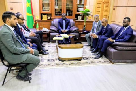 استقبل معالي وزير العدل، السيد محمد ولد اسويدات، في مكتبه، المكتب التنفيذي للنقابة المستقلة لكتاب الضبط الرئيسيين.برئاسة النقيب باب المان