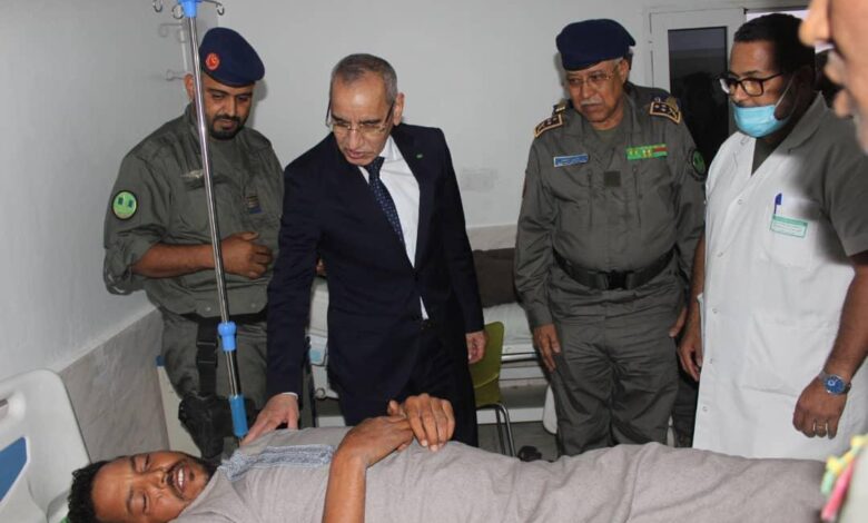 زار وزير الداخلية محمد أحمد ولد محمد الأمين، رفقة قائد أركان الحرس الوطني الفريق إبراهيم فال ولد الشيباني، مساء الاثنين، المستشفى العسكري للاطمئنان على حالة عناصر الحرس الوطني بعد حادث سير ليلة البارحة.